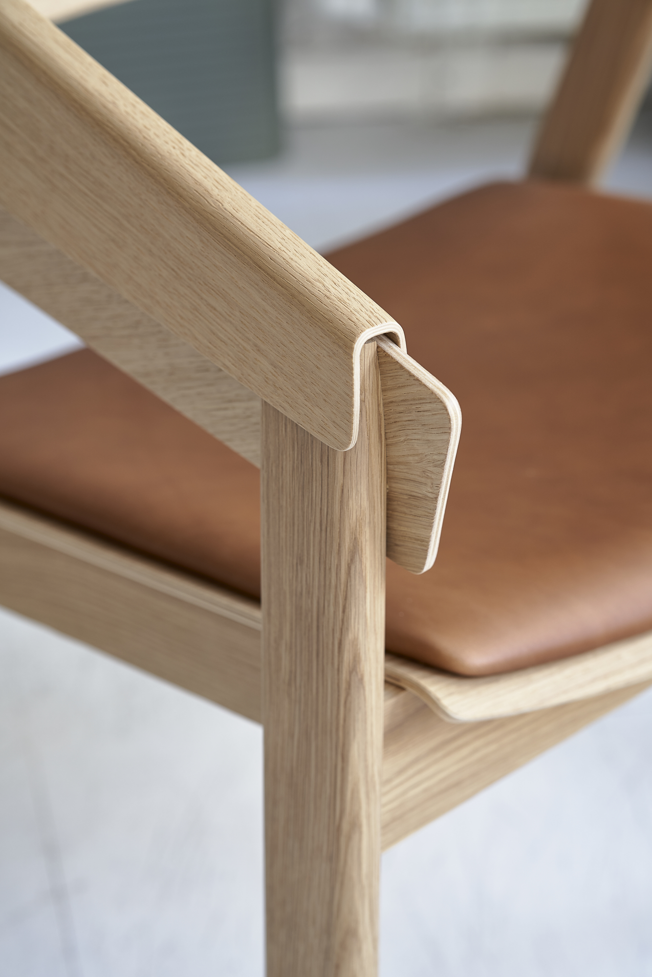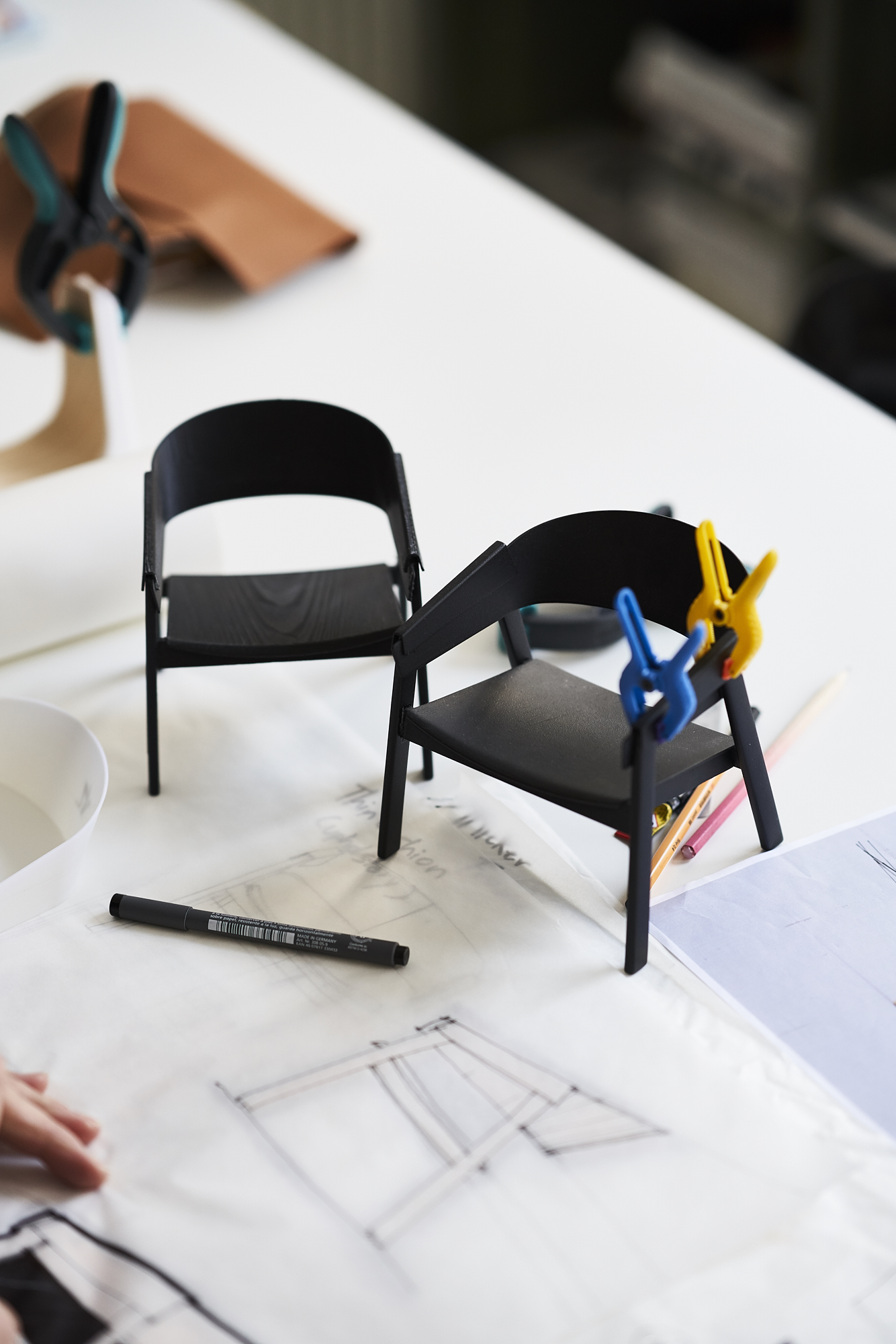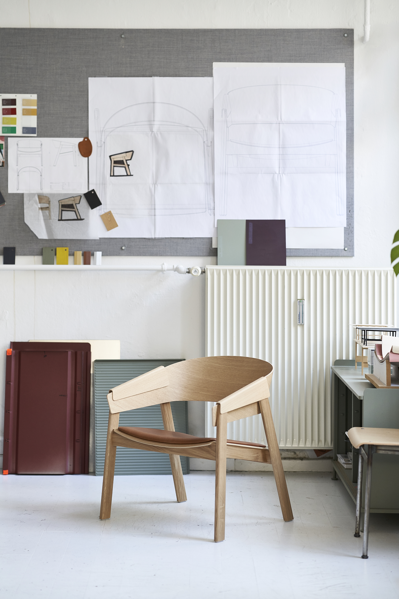 Turning to his own design philosophy and his relation to the Cover Lounge Chair, Bentzen explains: “The chair is a product of my previous work and designs—there is a clear red thread to my other projects with Muuto, modernizing the use of veneer in combination with solid wood.”