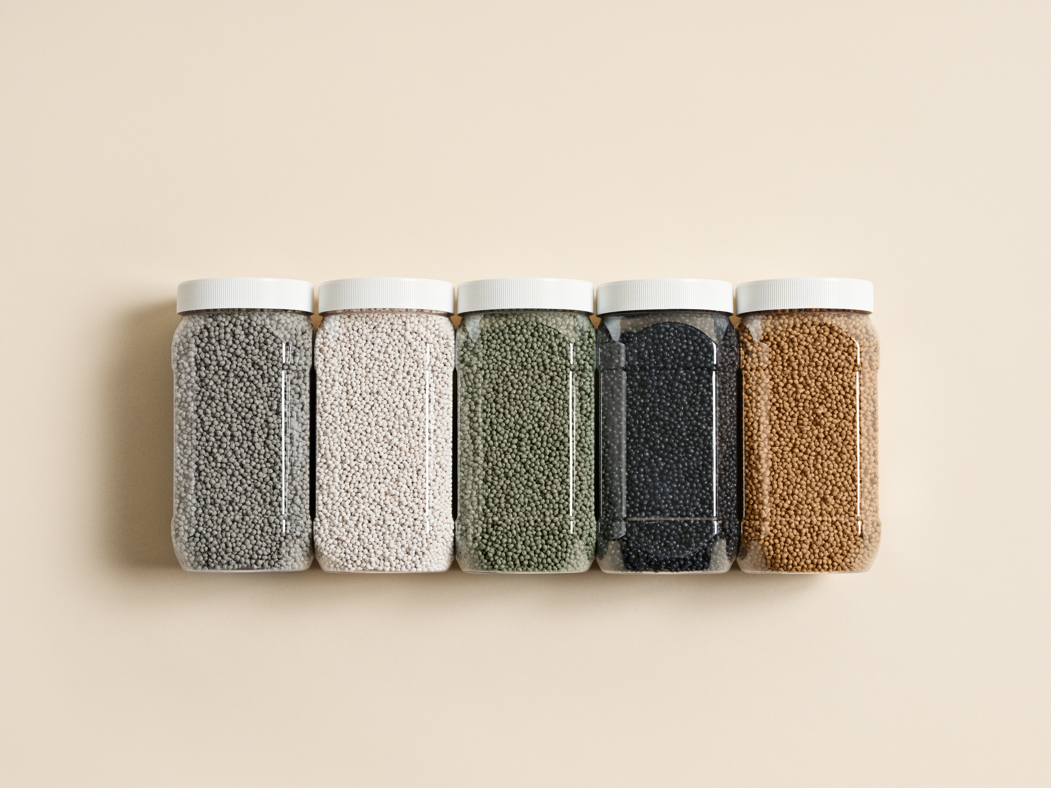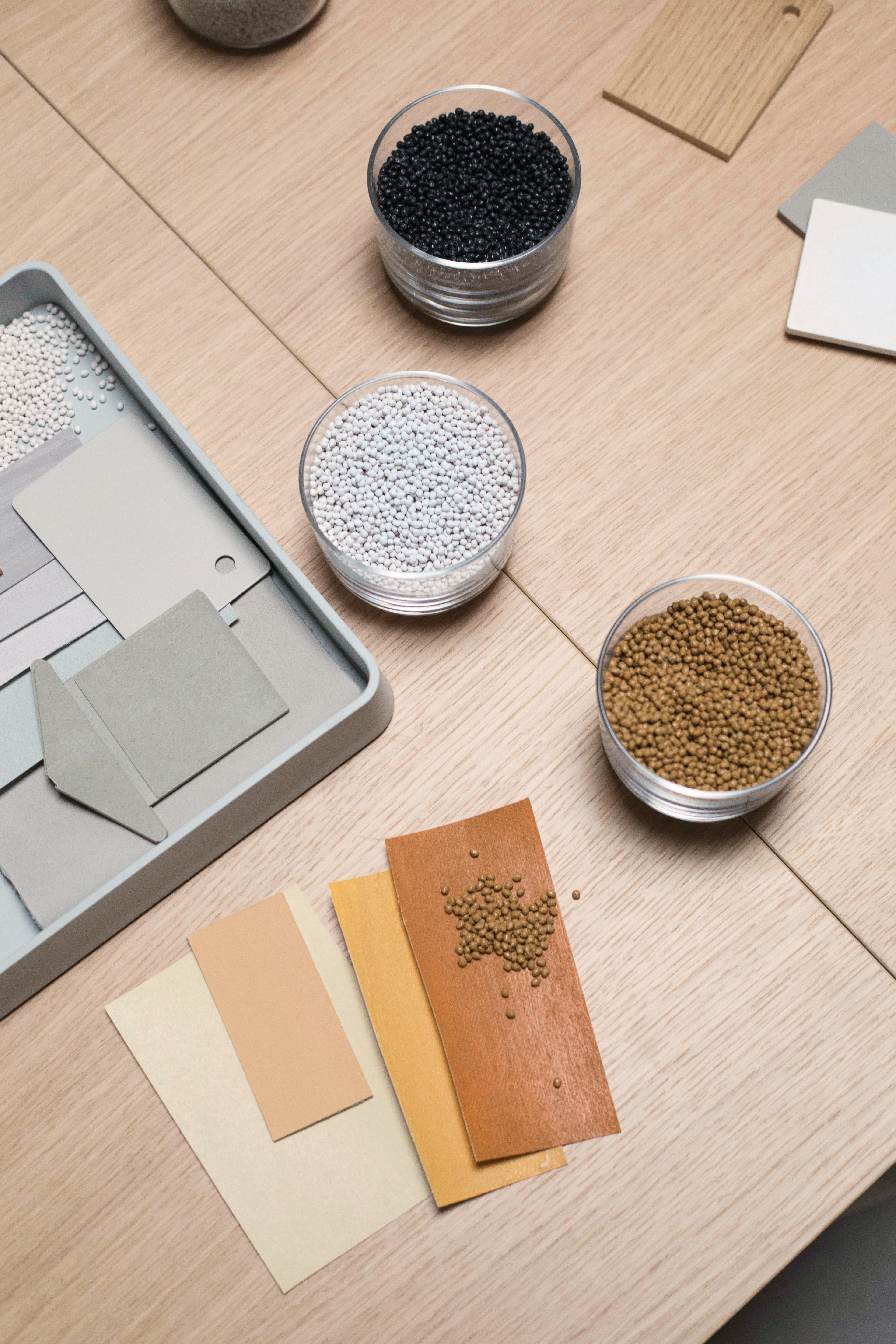 Trine: If you aren't buying off-the-shelf materials, the procurement of recycled materials often happens through a materials exchange market. Like I said, it’s a bit of a wild wild west situation where you never quite know what you’re getting and if you will be able to buy the same material again in the future. Most recycled plastic today comes from household waste, more or less a murky shade of dark gray and of a vastly varying quality.