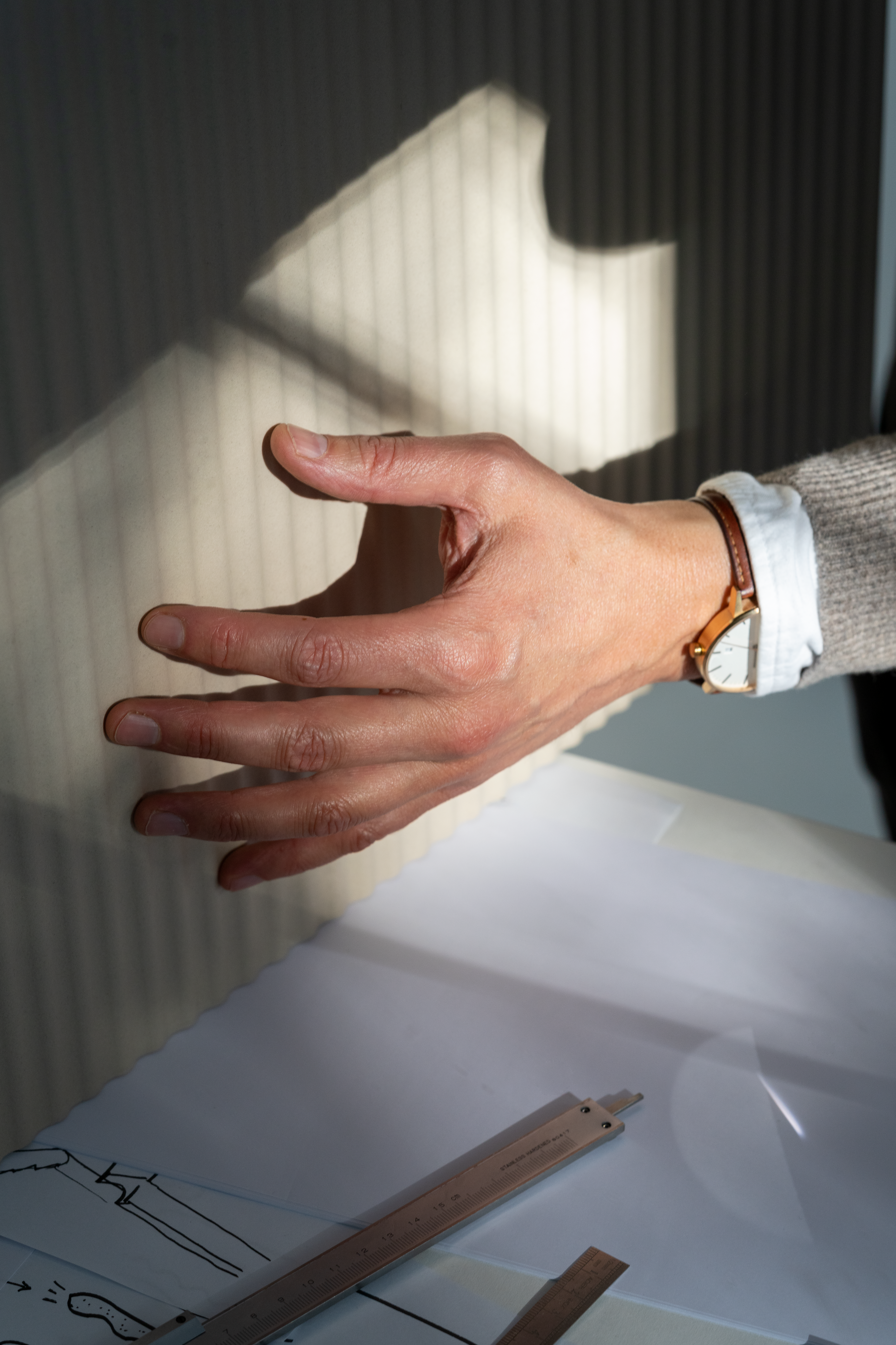 "Adding the wavy texture to one of them, we really wanted to make it look interesting, to enhance and use the qualities of the material — to show them off. It gives that taste of…something different, a surface that interacts with light and shadow, and welcomes touch or even to put your pencil in its ridges"