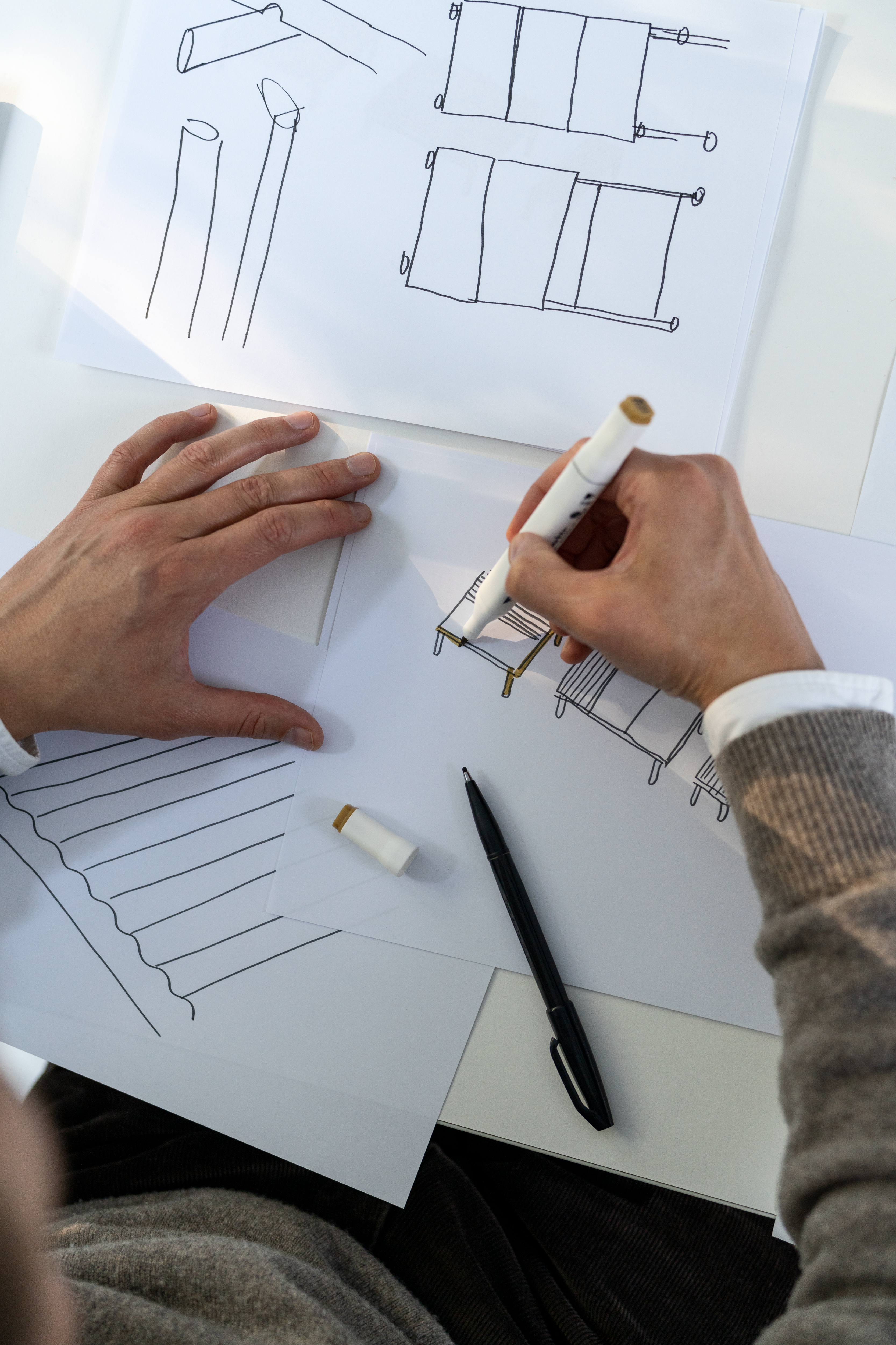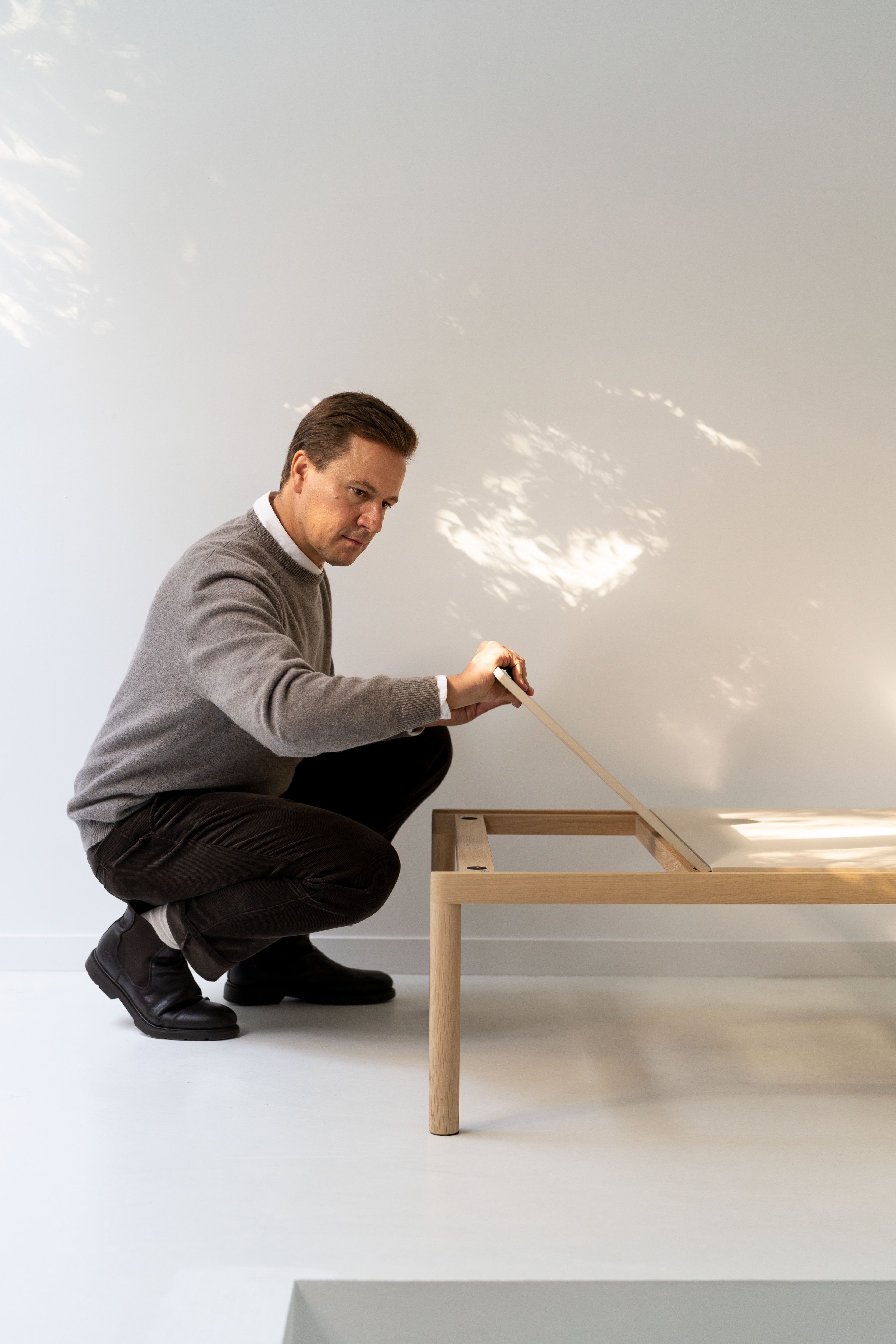 "I started looking into using ceramics, this raw material, to create a piece of furniture in dialogue with Muuto. There was an interesting tension I had in mind, between the heaviness of the ceramic tiles and the lightness of a frame supporting it."