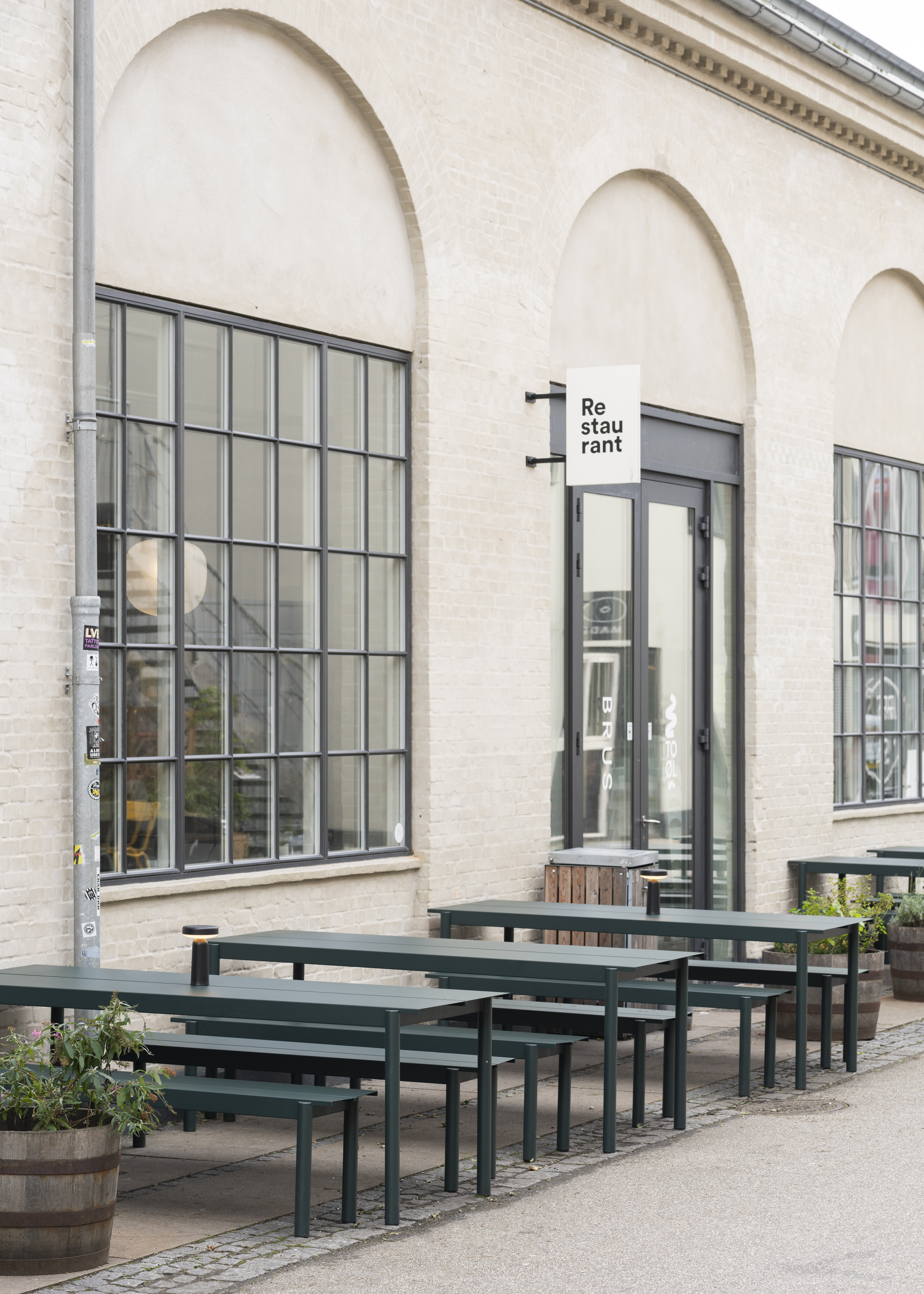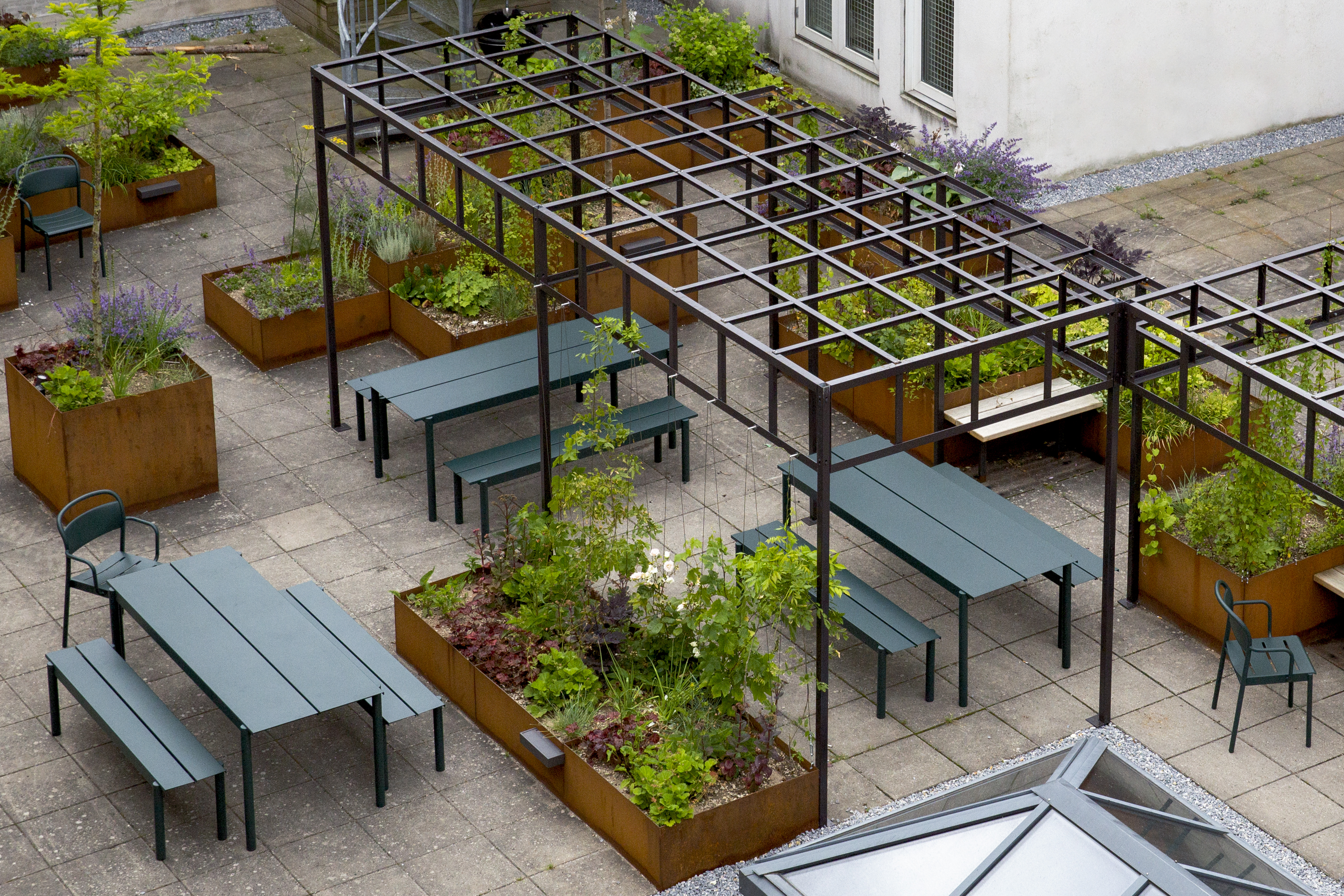 Made from galvanized steel with a weather-resistant deep matt, UV-resistant powder-coated finish, making the series suitable for outdoor use.